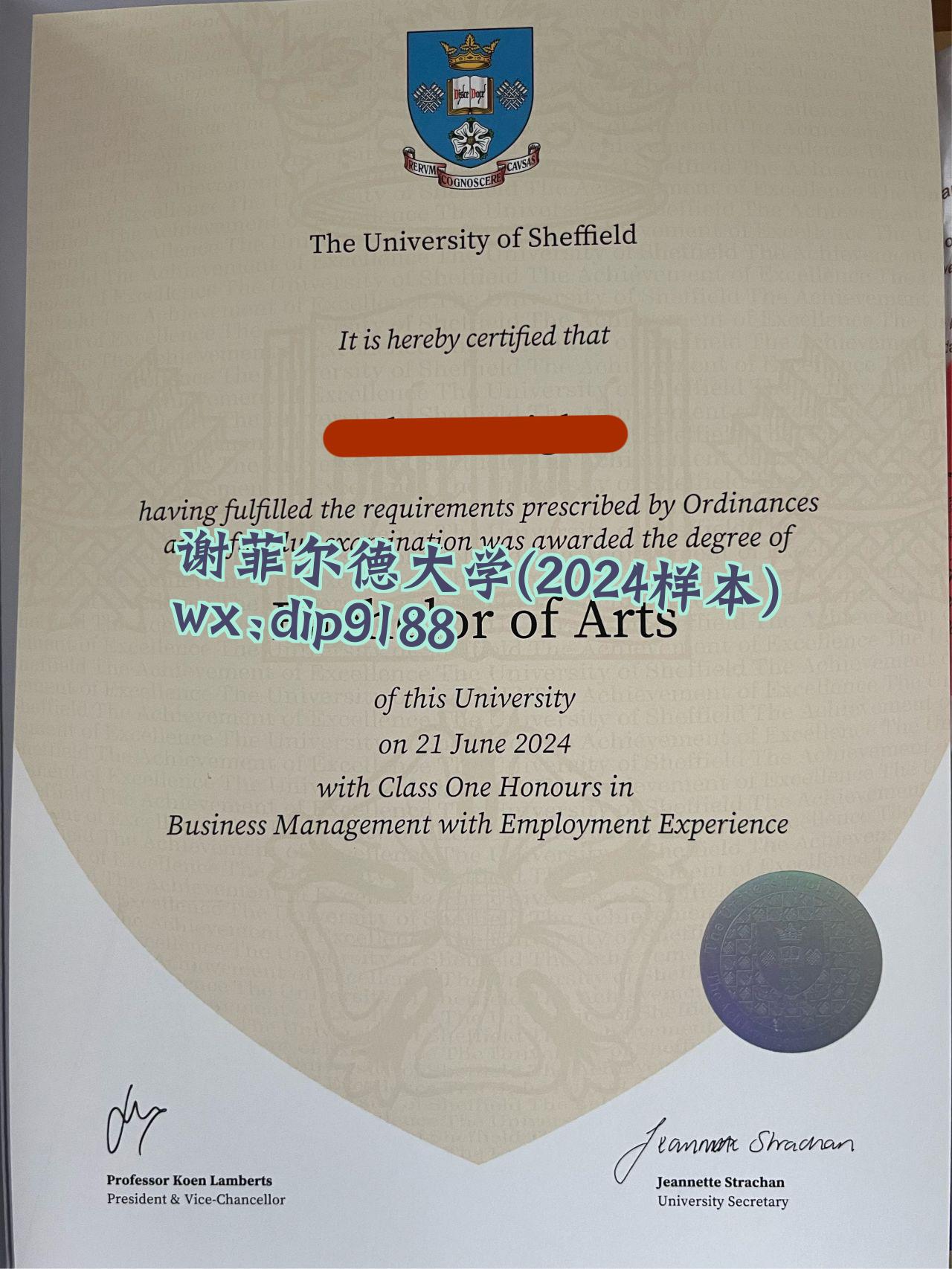 谢菲尔德大学学历2024毕业证样本图